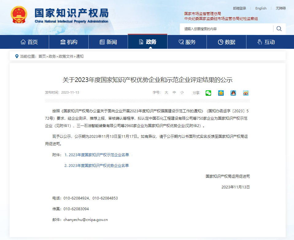 11月13日,國家知識產權局公示了關于2023年度國家知識產權優勢企業和示范企業評定結果,河南源宏高分子新材料有限公司憑借在知識產權創造、運用、管理及保護等方面的多重優勢成功入選“2023年度國家知識產權優勢企業”。