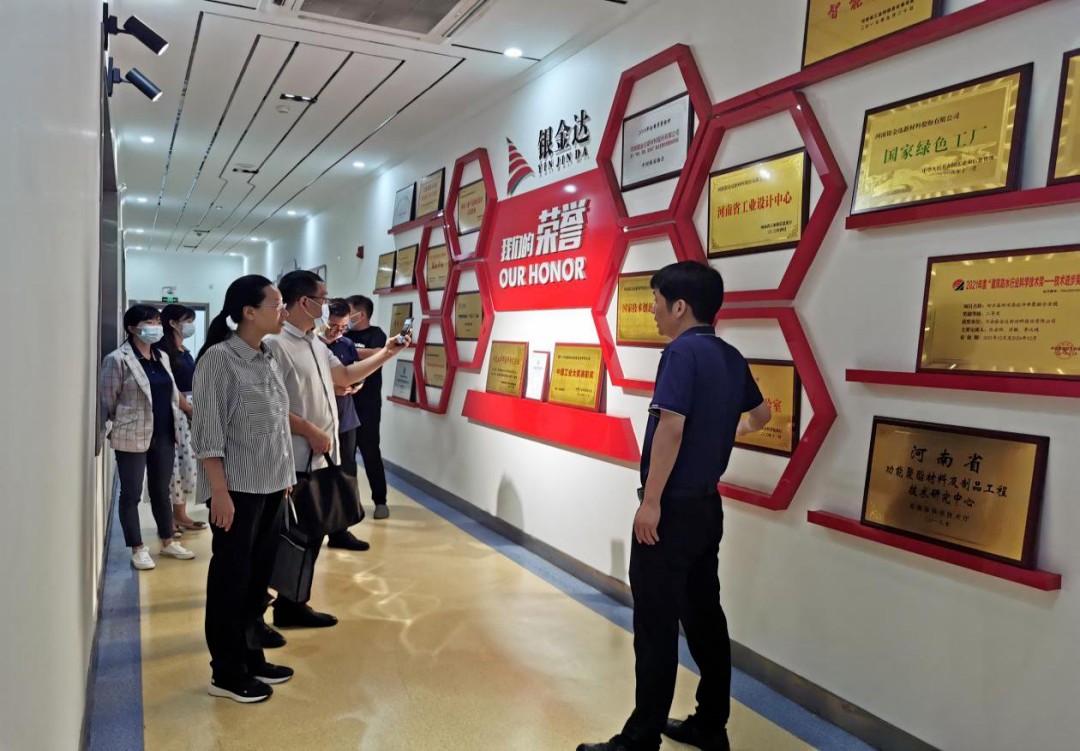 2022年8月11日,新鄉(xiāng)市科技局副局長郝科偉、新鄉(xiāng)市科技局黨組成員、市紀(jì)委監(jiān)委派駐市科技局紀(jì)檢監(jiān)察組組長李超平等一行,到河南達(dá)新源新材料有限公司開展惠企利企政策落實(shí)情況專項(xiàng)調(diào)研。衛(wèi)輝市科工信局副局長彭文林、科長張衛(wèi)華等相關(guān)領(lǐng)導(dǎo)陪同調(diào)研,銀金達(dá)集團(tuán)創(chuàng)新協(xié)同中心主任周宏濤、新材料公司副總經(jīng)理、技術(shù)總監(jiān)張啟綱等陪同匯報(bào)工作。