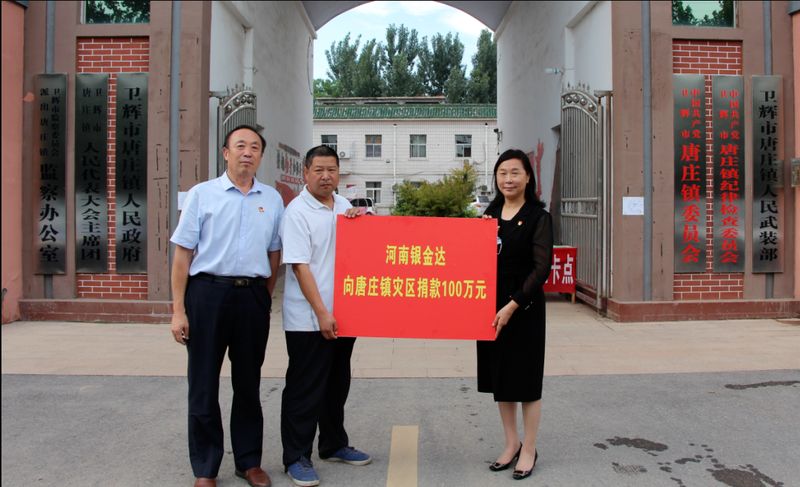 黨委書記、董事長閆銀鳳代表河南銀金達集團向唐莊鎮(zhèn)人民政府捐資100萬元;